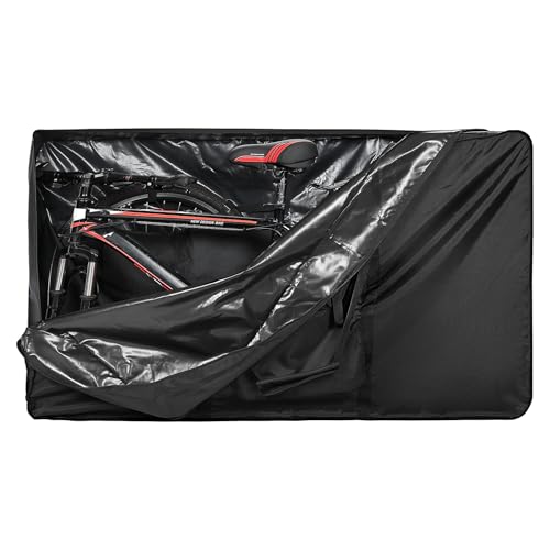 KEMIMOTOの輪行バッグは、26~29インチの折りたたみ自転車用で、ポリエステル900D製の耐摩耗性と防水コーティングを備えています。持ち運びが簡単で、旅行や輸送に便利なブラックデザインです。