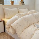 YYHNOOOOKの布団カバー4点セット(セミダブル)は、水玉柄で肌触り良好。掛け布団カバー、ボックスシーツ、枕カバーが含まれ、丸洗いOK。ズレ防止ヒモ付きで使いやすい寝具です。