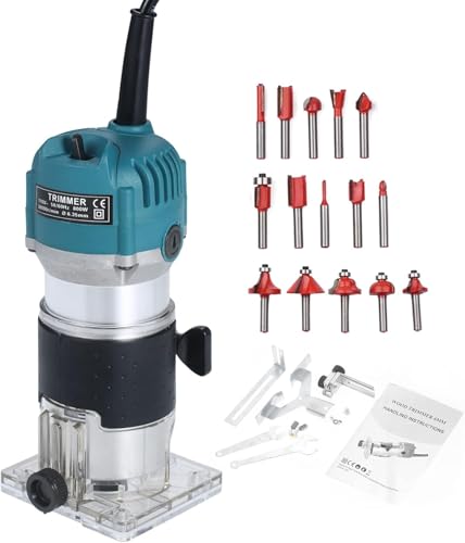 800Wの高出力木工用ルーター。15個のビット付きで、初心者にも操作が簡単。コンパクト設計でDIY加工や木材彫刻に最適。110V対応、安全設計でプロにも対応。