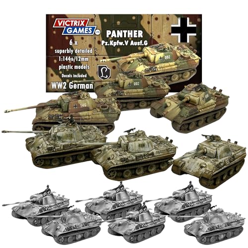 Victrix Panther Ausf Gタンクセットは、6つの詳細な12mmスケールのドイツ戦車ミニチュアとボーナスSTLダウンロード付き。ウォーゲーム用のデカールシートも含まれています。