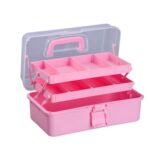 EINEY収納ボックスは、3段式で大容量のツールボックスです。半透明デザインと取っ手付きで、家用や車用に最適。小物入れや裁縫箱、工具箱としても使用できます。カラーはピンク。