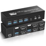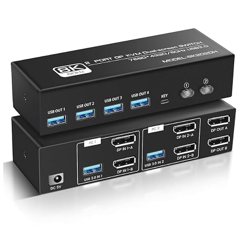 NEWCARE 8K@60Hz/4K@144Hz KVMスイッチは、2台のPCと2台のモニターを接続可能。HDMI2.1、DP1.4に対応し、USB3.0で周辺機器共有も簡単。拡張・複製モードが利用でき、コントローラー付き。