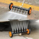 Nihigアンダーキャリッジ高圧洗浄機アタッチメントは、4000 PSI対応の16インチデュアル機能ウォーターブルームで、3ピース延長ワンドと7ノズル付き。オレンジカラー。