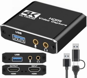 キャプチャーボードは4K HDMI パススルー 機能を搭載しています 1080P 60Hz USB 3.0 ビデオゲーム キャプチャーカード 高速転送 低遅延 ゲーム実況生配信ライブ、ビデオ会議録画、リアルタイムストリーミング 画面共有 Switch PS5/PS4/Xbox/Wiuに対応 Mac/Windows 11/ Linux/Android/iPad OS17に適用
