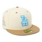 ニューエラ59FIFTYキャップ、ロサンゼルス・ドジャース仕様。大谷翔平モデルのホワイト、LAクローム/ウィート。サイドパッチ、2トーンデザインで春夏コーデに最適。メンズ・レディース兼用。