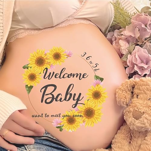 プリモナベビーのマタニティフォトシールH2 SUMMER(ひまわり)は、100種以上のデザインで、優しい素材の低刺激ソフトタイプ。簡単に自宅でセルフフォトが楽しめ、貼り方・剥がし方の説明書も付属。