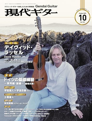 現代ギター2025年10月号(No.745)は、クラシック・ギター愛好者向けの情報誌です。最新の技術や演奏方法、アーティストのインタビュー、楽器レビューなど、様々なコンテンツが満載で、クラシックギターの魅力を楽しむための一冊です。