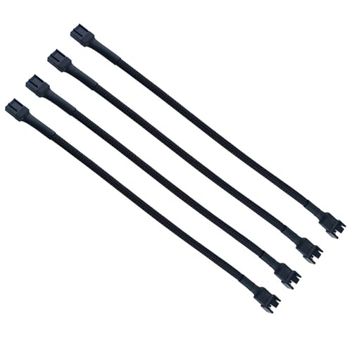 LUYINGのPWMファン用電源延長ケーブルは、4ピンおよび3ピンファンに対応し、PCケースやマザーボードに接続可能。27CMの長さで4本セットの黒色ケーブルです。