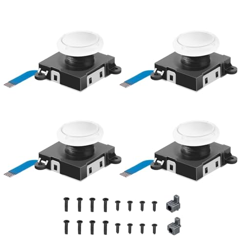 Switchジョイコン修理パーツ。NS Joy-con対応の専用修理キット。右/左用コントローラー修理に最適。アナログジョイスティック4個付き(ホワイト)。親指キャップも含まれ、使いやすさも考慮。