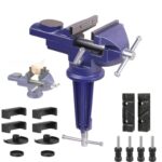 万力 テーブルバイスは、口幅約70mm、最大開口約60mmで、360°回転可能です。強力な固定機能があり、作業台やテーブルに取り付けて使用するのに最適な工具です。