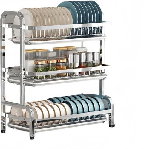 Deronder水切りラックは2/3段のシンク上設置可能で、食器の自然乾燥に最適。強力な耐荷重と滑り止め機能で安心。省スペースで組み立ても簡単。大容量で皿や箸、包丁も収納可能。