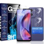 JCJCLY 対応 moto g05 ガラスフィルム 6.7インチ。2枚の強化ガラスとカメラレンズフィルムがセット。硬度9H、耐衝撃、厚さ0.26mmで高透過率。指紋防止・自動吸着機能あり。