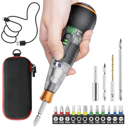 Yacooda電動ドライバーは、鬼トルク6N.mで強力。16点ビット、USB-C充電、収納ケース付き。軽量で操作簡単、DIYや初心者にも最適なクリアグレー色。高輝度LEDライトも搭載。