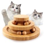 猫おもちゃ 木製 竹製 ボール回転盤 タワー ぐるぐる 遊ぶ盤 玩具 一人遊び ペット用品 運動不足 ストレス解消 (二層) 高価買取中