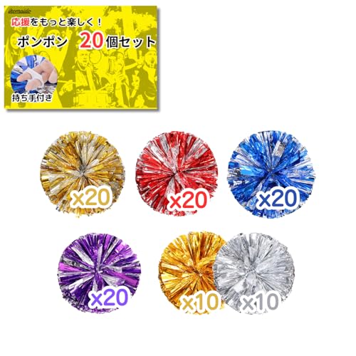 ikomaidoのチアポンポン20個セット。メッキ仕上げで、おしゃれなシルバー×パープル。応援やイベントに最適なチアリーダーグッズ。学校の行事やパーティーで盛り上がります!