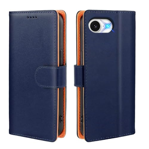 iPhone 16e対応手帳型ケース。高級PUレザー製で耐衝撃・耐摩擦。マグネット式、カード収納、スタンド機能あり。手触り良好で全体を保護。カラーはブルー。