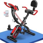/ 【静音&折りたたみ式】 DMASUNエアロバイク フィットネスバイク トレーニングバイク【3-in-1アプリ連動/心拍数計測/エクササイズバンド付き】16段階負荷 7段階サドル高さ調整 有酸素運動 組立簡単 5年間製品保証