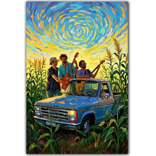 / Tzstz 素朴な音楽バンドウォールアートキャンバスプリント、ゴッホスタイル絵画、コーンフィールドのトラックと創造的な絵画の複製、ホームデコレーション用壁装飾(木製フレーム付き)7.75インチ x 11.75インチ