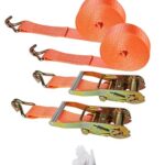 ラッシングベルトは、長さ20m、幅5.0cm、破断荷重5000kgで、荷物の固定やトラック輸送に最適です。オレンジ色の2本セットで、引越し時の荷崩れ防止に効果的です。
