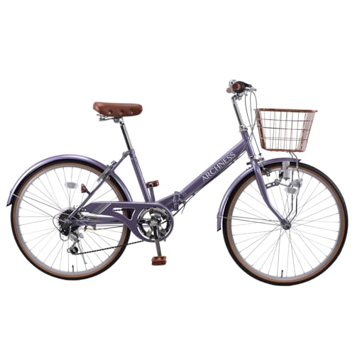 ARCHNESSの24インチ折りたたみジュニア自転車は、小学生向けのシティサイクルです。シマノ6段変速、カゴ・ライト・鍵付きで通学に最適。カラーはライトパープル。