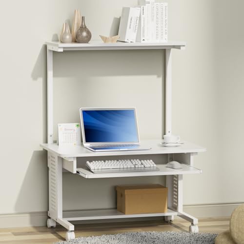 DEWEL ローデスクは、テレワークや学習に最適な80x50x100cmの木製デスクです。収納棚とキーボードテーブル付きで、キャスターで移動も簡単。ホワイトの木目柄で省スペースなシンプルデザイン。