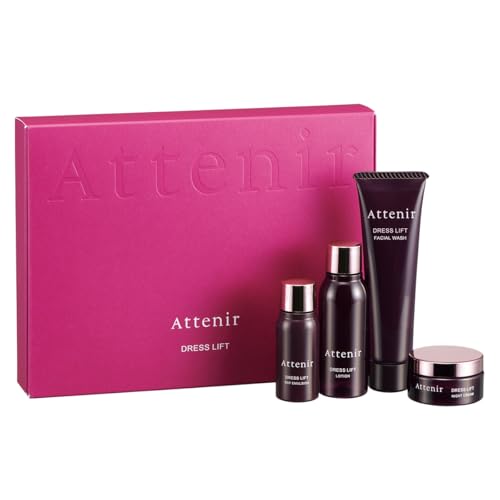 アテニアのドレスリフト2週間トライアルセットは洗顔料・化粧水・乳液・ナイトクリームが含まれ、エイジングケア、浸透、ハリ、シワ改善に効果的な医薬部外品です。
