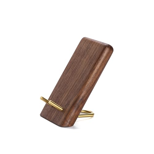 Faluber木製スマホスタンドは、真鍮支柱付きでおしゃれなデザインが特徴。ウォルナット木目が美しく、卓上やデスクでの使用に最適。スマホやタブレットのユニバーサルホルダーとして対応します。