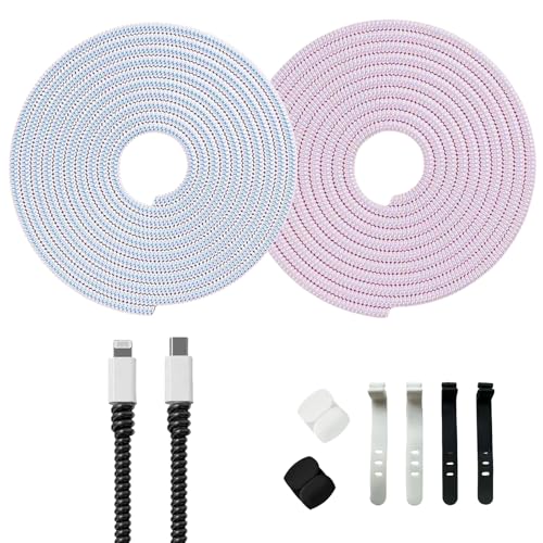 HIMIHOM ケーブルカバーは、長さ6m、直径5mm-6mmの細いプロテクターで、断線防止やペット噛み対策に最適。黒白の4本セットで、コードまとめ、折れ・汚れ防止に役立ちます。