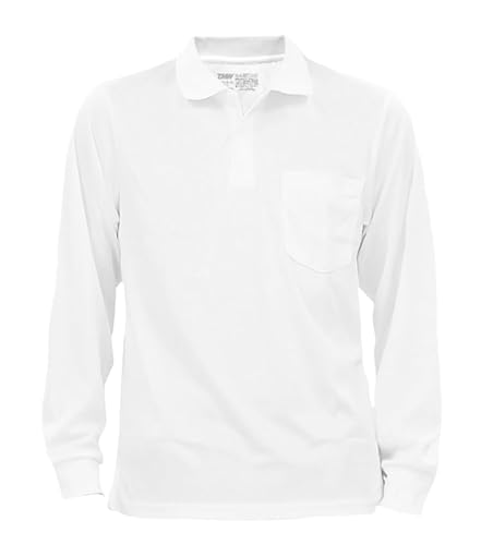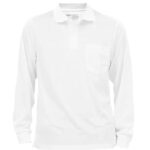 ハダギヤの長袖ドライポロシャツ。胸ポケット付きで、仕事着やスポーツに最適。サイズはM、L、LL、3Lから選べ、カラーはホワイト。快適な着心地で、平松工業製。
