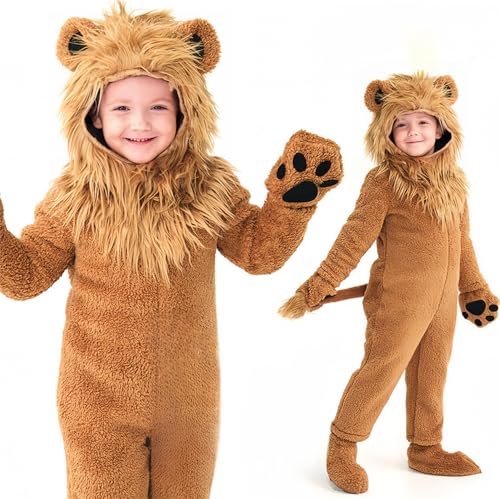 JUNDOMECYのライオン着ぐるみは、子供用のリアルでかわいいコスプレ衣装です。全身もこもこで柔らかく、ハロウィンやイベント、舞台などでの変装に最適。写真撮影にもぴったりです。