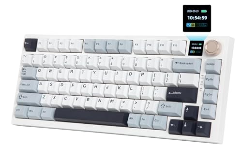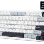 HUO JIの75%英語配列ワイヤレスゲーミングキーボード。BT/2.4GHz/USB有線対応、ガスケット構造、ホットスワップ対応。リニアスイッチ、RGBバックライト、4000mAhバッテリー搭載でWindows/Mac対応。