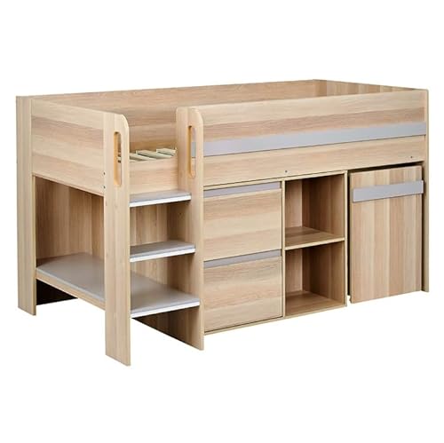 スマート・アイ システムベッド 3点セットは、デスクとチェスト付きのロータイプです。高さ72cm、すのこベッドで木製シンプルなデザイン。色はノルディックナチュラル×ウォームグレー。