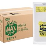 ジャパックスの90L半透明ゴミ袋は、500枚(100枚×5冊)入りで、厚み0.02mmの耐引張力の強いポリ袋です。まとめ買いに最適なケース販売です。