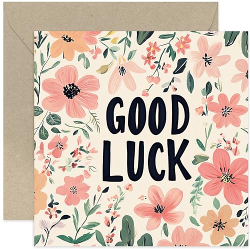 美しい幸運カード、グワッシュペイントピンクフラワーデザイン。大胆な手書きイラストで、試験や新しい仕事、引っ越しにピッタリのかわいいベストウィッシュカードです。