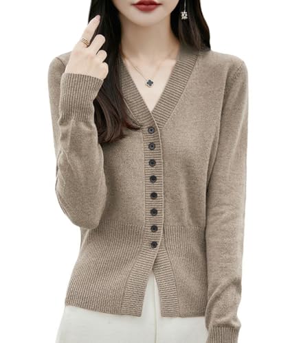 カーディガン レディース 春用の無地ニット。オフィスでもカジュアルにも使えるゆったりしたデザイン。おしゃれで大きいサイズもあり、キャメル色が魅力的です。