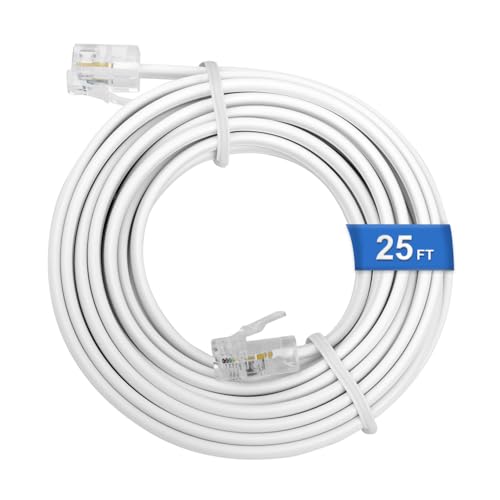Uvital 25フィート ホワイト 電話延長線コード 標準RJ11 6P4C 電話ケーブルワイヤー、固定電話線、電話、モデム、ファックス機用の高価買取