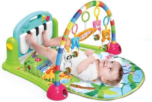 Yobuisgのベビーフィットネスプレイマットは、音楽活動センターやロッキングチェア機能を備え、赤ちゃんが楽しく遊べるおもちゃです。(グリーン、72.5*60*47cm、電池要)出産祝いにも適しています。