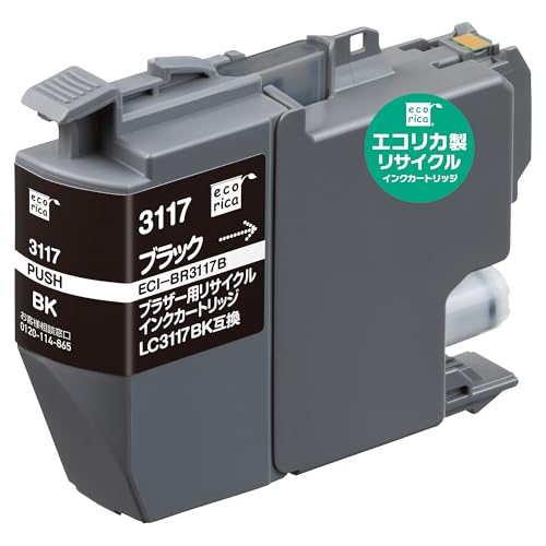 エコリカ ブラザー LC3117BKは、リサイクルインクカートリッジで、ブラックインクが含まれています。印刷品質が高く、環境に配慮した製品です。対応プリンターはLC3110シリーズです。