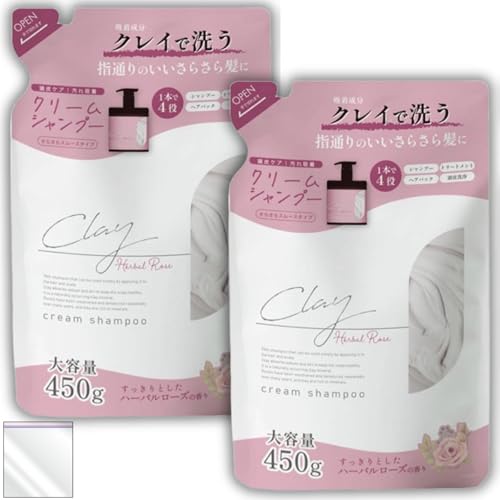 クレイクリームシャンプー2個セット。くせ毛や縮毛矯正に効果的な人気のシャンプー。詰め替え用で、スムースタイプ(ハーバルローズの香り)。美容室専売品として髪質改善やヘッドスパ効果も魅力。