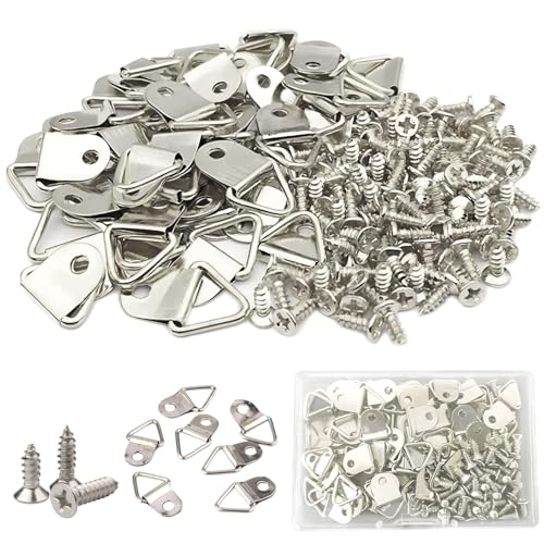 額縁金具のセット(1箱50個)です。シルバーの軽量デザインで、木ネジ付き。額縁やアート作品、ポスター、ミラーの吊り下げに最適。簡単に取り付け可能です。