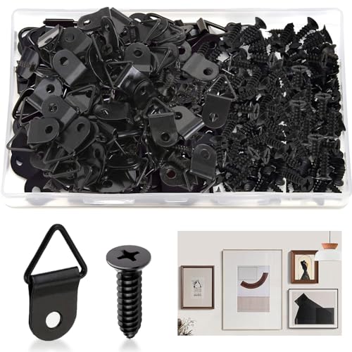 額縁金具 吊り金具は1箱50セット入りで、ブラック色の軽量設計。木ネジも付き、額縁やアート作品、ポスター、ミラーの簡単な取り付けに最適です。
