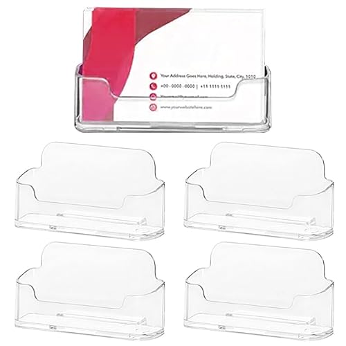 透明プラスチック名刺ホルダー4個セット。アクリル素材で耐久性があり、洗練されたデザイン。デスクトップに最適な名刺ディスプレイとして、名刺をしっかりと支えます。