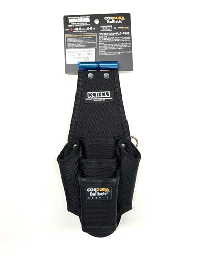 ニックスのEVAコーデュラバリスティック生地製腰袋は、チタンプレートで強化されており、ペンチ・ニッパー・ドライバーを収納する5Pホルダーが付属。耐久性に優れた黒色モデル(BAT-501PLNDX)。