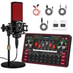 ポッドキャストマイクバンドル、ライブサウンドボードオーディオミキサー、ポッドキャスト機器バンドル、PC/電話ライブストリーミング、歌唱ゲーム、ボイスチェンジャー付きサウンドボード、ノイズ除去用3.5mmコンデンサーマイク付きの高価買取ITEM