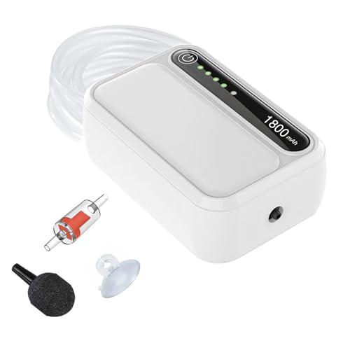 THYESCOM小型エアポンプは停電時に自動作動し、最大45時間稼働可能。1800mAhリチウム電池内蔵で、1.5L/minの静音空気排出が特徴。水槽や釣り、魚の移送に最適。