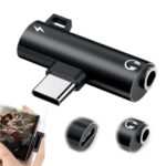 MHSKNHW Type-C イヤホン変換アダプタは、3.5mmオーディオジャック、音量調節、通話対応、DAC搭載でハイレゾ音質。iPhone15、16およびAndroid対応、音楽再生と同時に充電可能。ブラック。