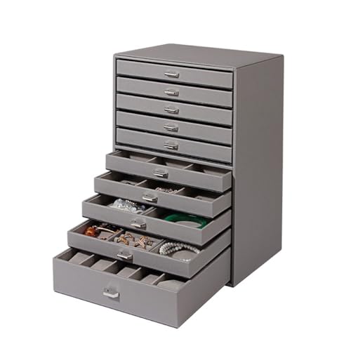 RUNCANのジュエリー収納ボックスは10層の大容量設計で、女性へのギフトに最適。多層構造でアクセサリーをスッキリ整理でき、グレーの落ち着いたデザインが魅力。