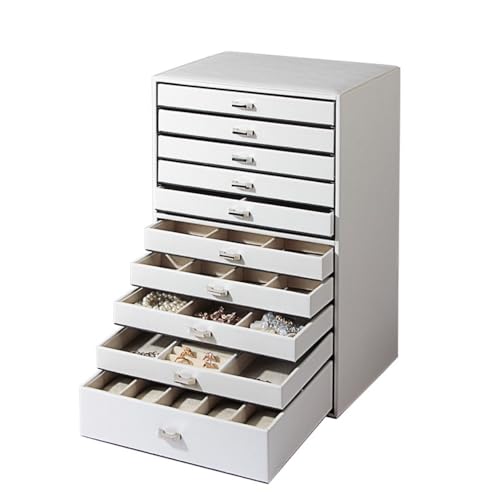 RUNCANの多層ジュエリー収納ボックスは10層の大容量で、ホワイトカラーが美しい。女性へのプレゼントに最適で、アクセサリーを整然と収納できます。