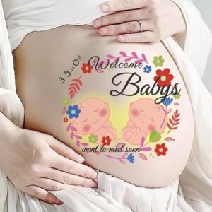 【販売数1万枚突破】優しい素材低刺激ソフトタイプ◆プリモナベビー◆ E 双子 ツインズ マタニティフォト ベリーペイントシール ボディペイントシール タトゥーシール かわいい プレゼント 出産祝い 男の子 女の子 マタニティシール 妊婦 セルフ フォト Temporary Pregnancy Tattoos 貼り方説明付き (E3-T)