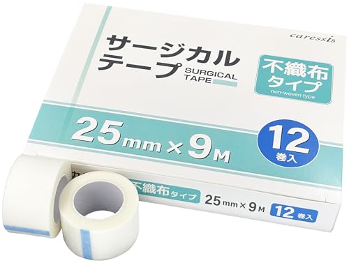 caressis サージカルテープは、不織布タイプの医療補助テープで、低刺激でかぶれにくく、包帯やガーゼの固定に最適です。手で簡単に切れる12mm×9Mサイズです。